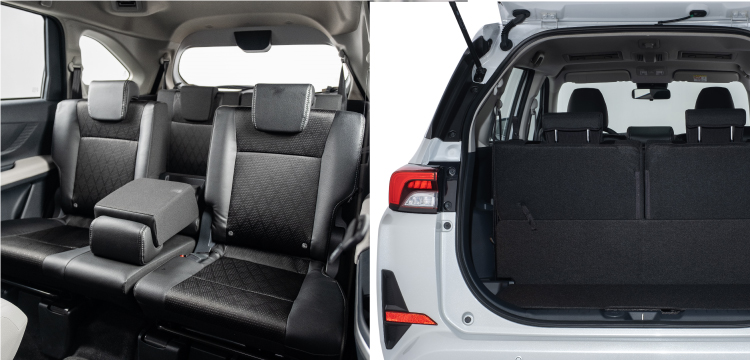 Hàng ghế sau rộng rãi,đa dụng với khoảng cách giữa hàng ghế một và hai rộng nhất phân khúc lên đến 980mm, hàng ghế thứ hai có tựa tay mang lại cảm giác thoải mái & thư giãn. Các hàng ghế có khả năng gập linh hoạt cùng chế độ sofa hay gập phẳng hàng ghế sau cho phép điều chỉnh không gian nội thất theo nhiều mục đích sử dụng.